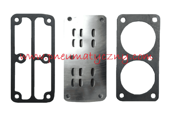 Płyta zaworowa do pompy FIAC AB 515 (AB 415). Płyta założona jest z dwóch części w środku których znajdują się 4 blaszki zaworowe w specjalnych kanałach.