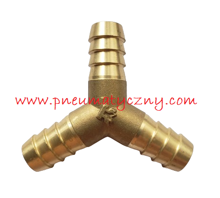 Trójnik mosiężny w kształcie litery „Y” na wąż o średnicy wewnętrznej 13 mm z każdej strony.