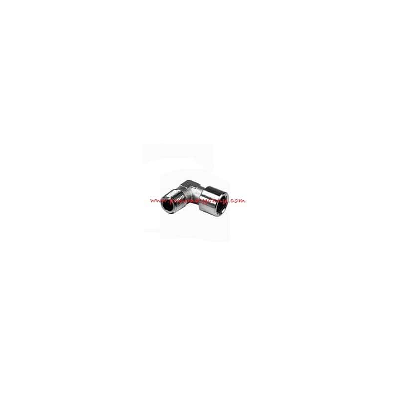 Złączka pneumatyczna kolanko nyplowe z gwintami 1/4″ zewnętrzny / wewnętrzny. Kolanko wykonane zostało z mosiądzu niklowanego (kolor srebrny).
